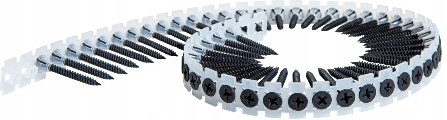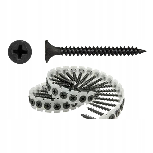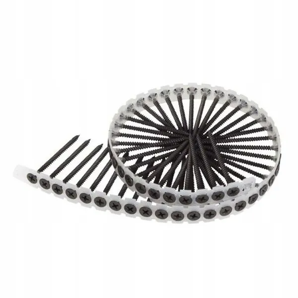 - Rodzaj: Wkręty do płyt kartonowo-gipsowych (GK) "S" na taśmie.