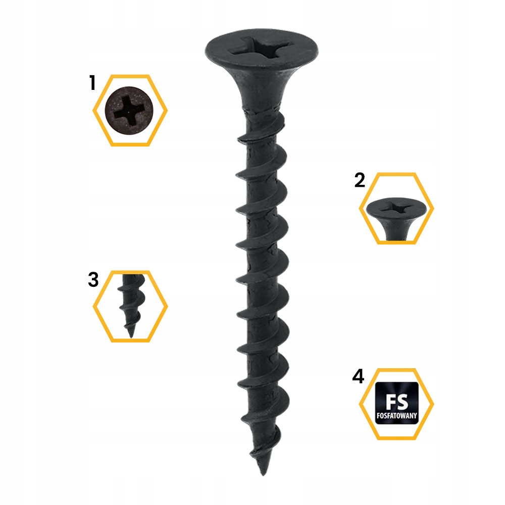 - Kolor powłoki wkręta / śruby / trzpienia czarny