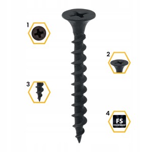 - Kolor powłoki wkręta / śruby / trzpienia: Czarny
