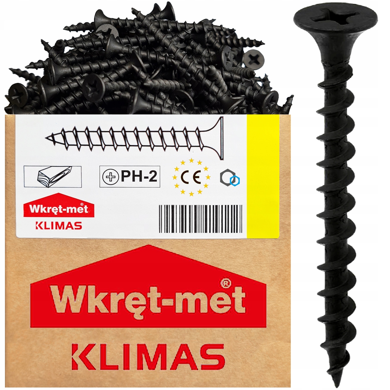 Wkręty do płyt GK do podłoży drewnianych 4,8x100mm 200 szt.czarne Wkręt-met