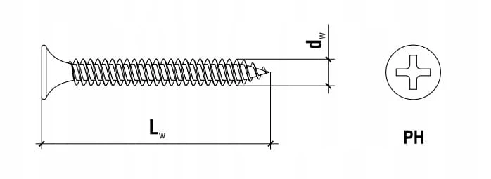 Konfekcja średnia do mocowania płyt gipsowo-kartonowych do profili stalowych wewnątrz budynków. Wykonane ze stali, powłoka fosfatowana, która chroni wkręty przed korozją. Typ wgłębienia PH2