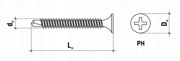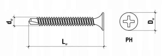 Wkręt samowiercący do mocowania płyt karton-gips do podłoża stalowego: