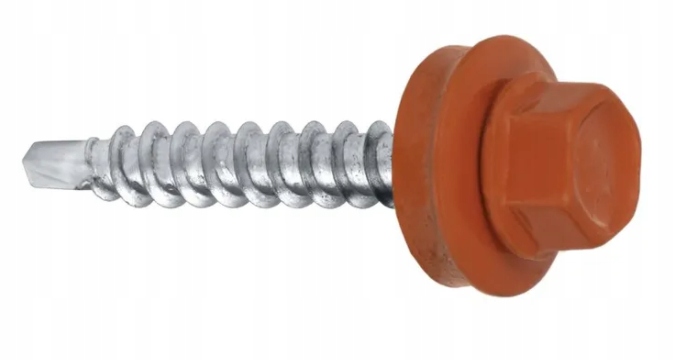 Wkręt samowiercący marki Wkręt-met z podkładką EPDM wykonany w powłoce cynkowej do mocowania blach, blachodachówki i obróbek blacharskich do podłoża drewnianego.