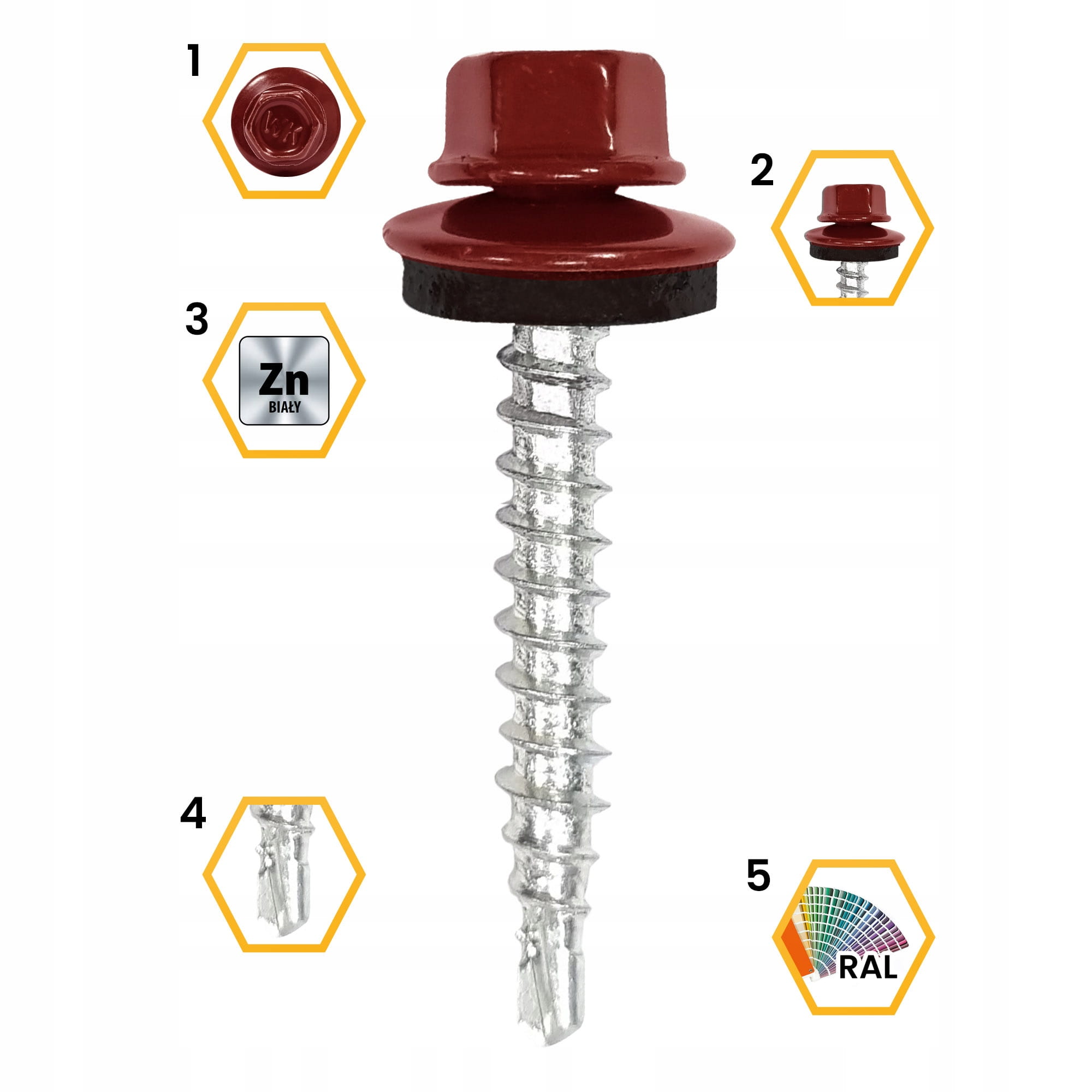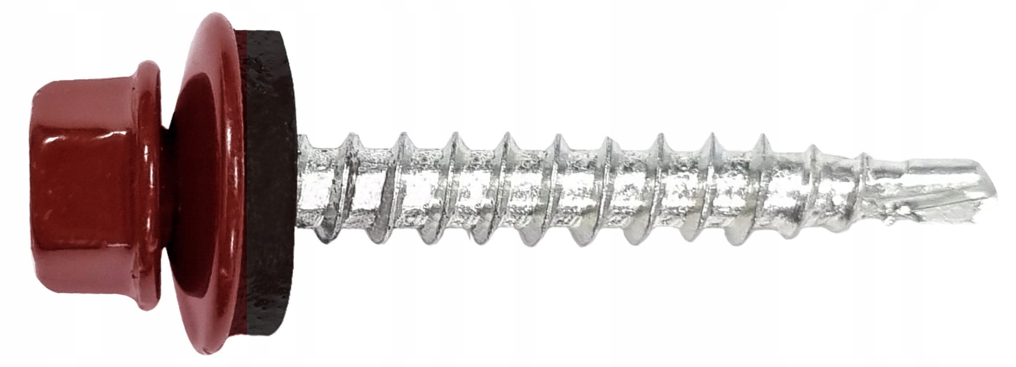 Wkręty farmerskie - samowiercące z podkładką EPDM wykonane w powłoce cynkowej do mocowania blachy, blachodachówek i obróbek blacharskich do podłoża drewnianego. Wkręty typu farmer lakierowane są wg. palety kolorów RAL