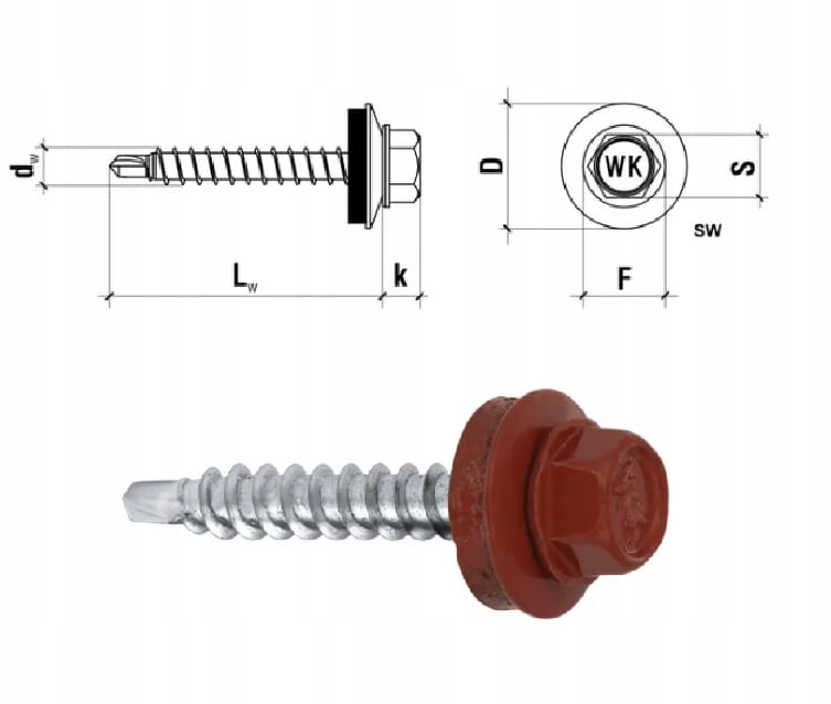 Wkręt samowiercący marki Wkręt-met z podkładką EPDM wykonany w powłoce cynkowej do mocowania blach, blachodachówki i obróbek blacharskich do podłoża drewnianego.