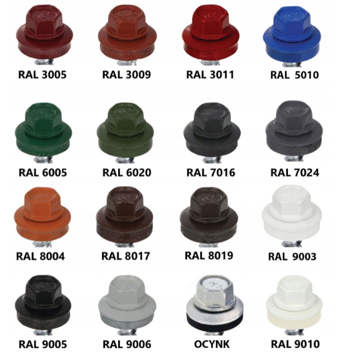 Wkręt typu farmer lakierowany wg, palety RAL.