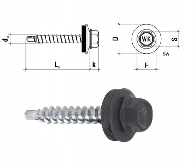 Wkręty farmerskie - samowiercące z podkładką EPDM wykonane w powłoce cynkowej do mocowania blachy, blachodachówek i obróbek blacharskich do podłoża drewnianego. Wkręty typu farmer lakierowane są wg. palety kolorów RAL