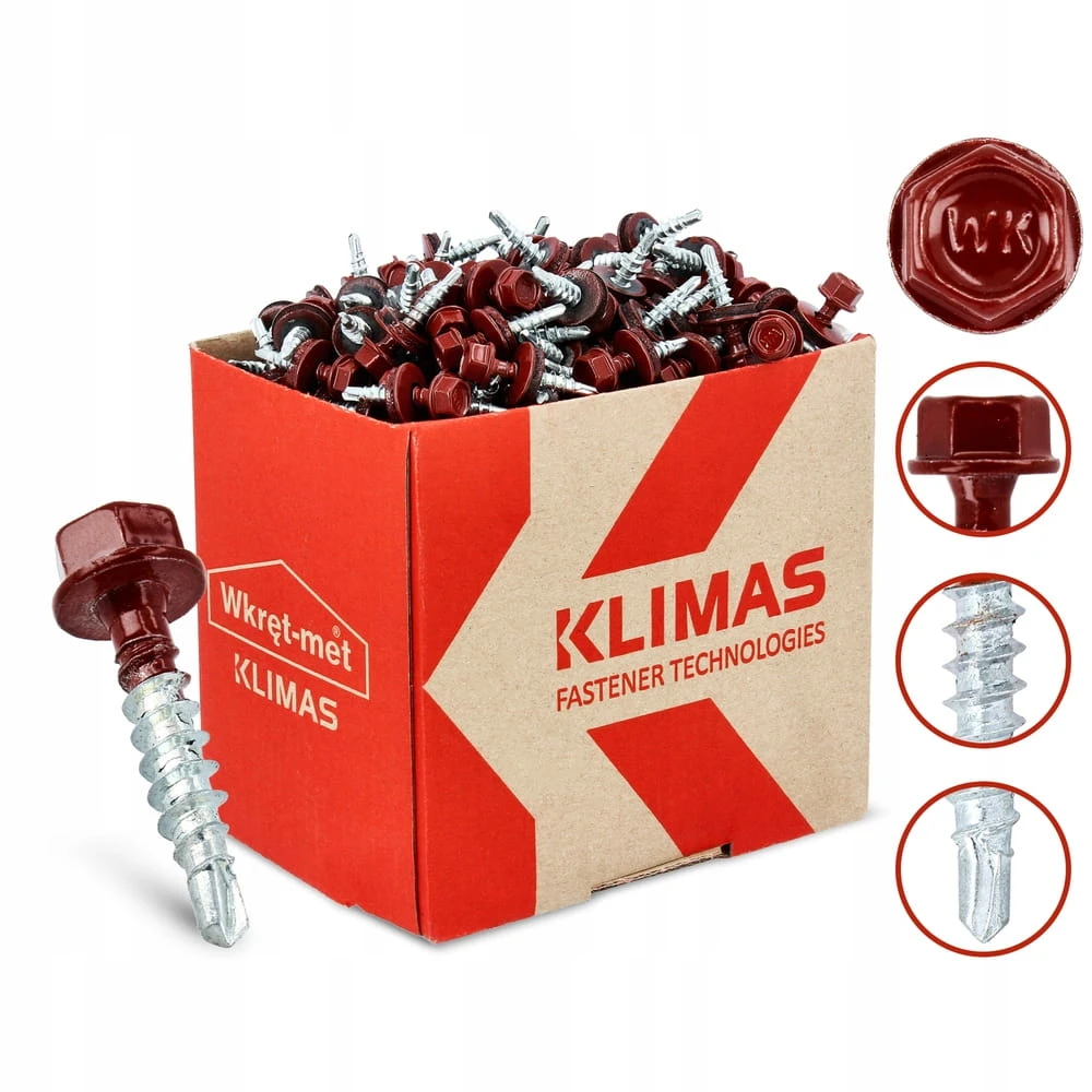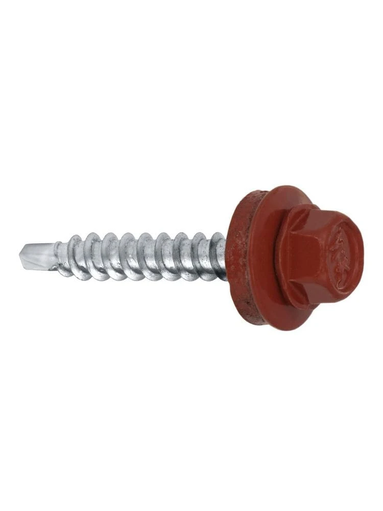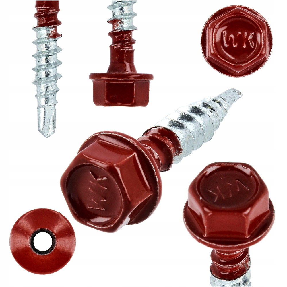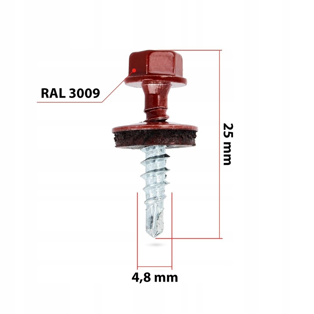Wkręt farmerski z podkładką EPDM do mocowania blach do podłoża drewnianego 4,8 x 25 mm wiśniowy 250 szt.
