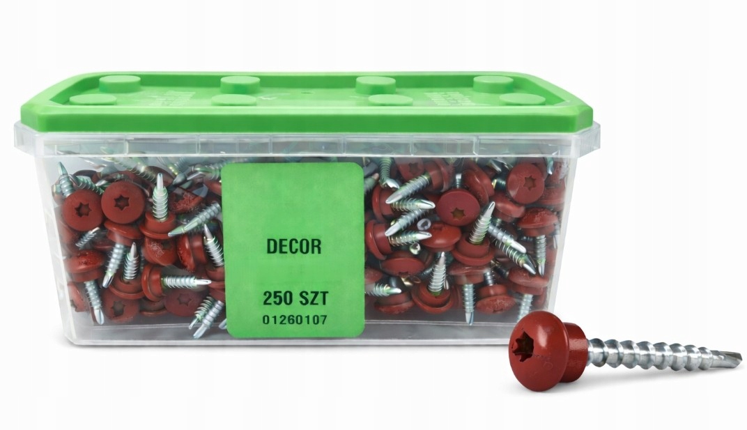 Wysokiej jakości wkręt farmerski Torx TX25 przeznaczony do montażu blach profilowanych do konstrukcji drewnianej oraz do łączenia blach. Idealny wybór dla dekarzy, monterów i majsterkowiczów, którzy cenią trwałość, szczelność i estetykę połączenia.