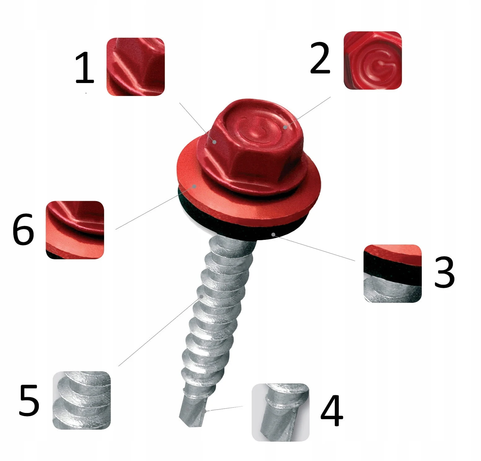 Wkręty farmerskie - samowiercące z podkładką EPDM wykonane w powłoce cynkowej do mocowania blachy, blachodachówek i obróbek blacharskich do podłoża drewnianego.