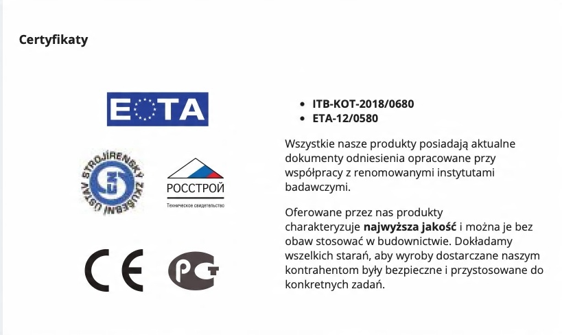 - Minimalna grubość zakotwienia łącznika: 20 mm