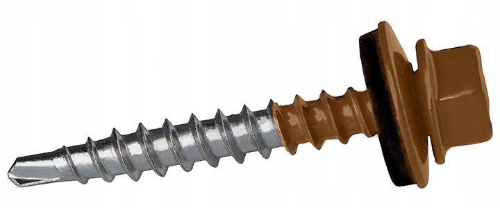 Łączniki samowiercące gwintujące wykonane ze stali węglowej utwardzonej powierzchniowo, ocynkowane elektrolitycznie, ze zredukowanym punktem wiercącym, gwintem do drewna oraz z łbem sześciokątnym, ze zmontowaną podkładką stalową z nawulkanizowanym EPDM.