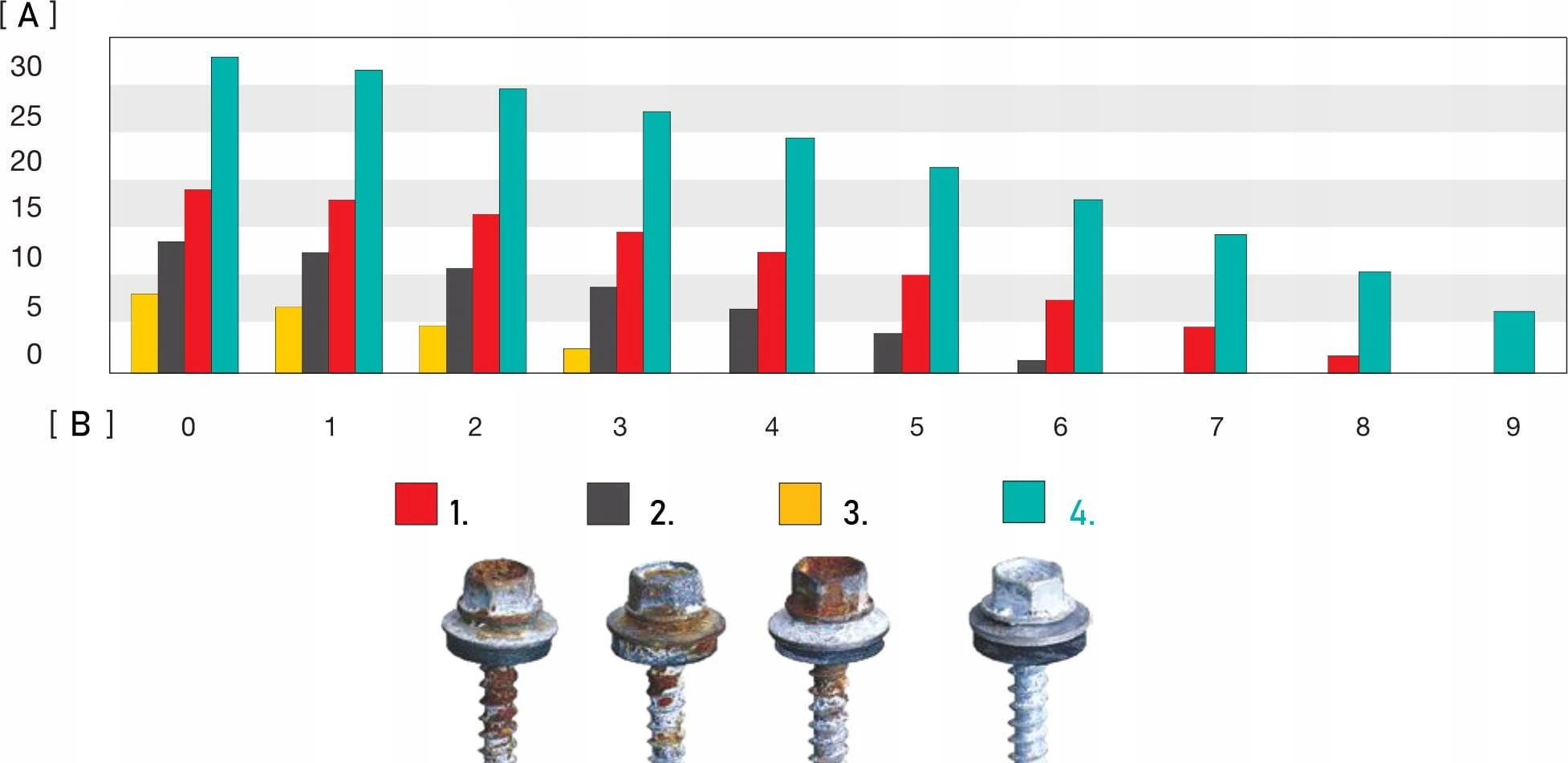 - ochronna warstwa powłoki cynkowej nie zdziera się podczas przewiercenia blachy