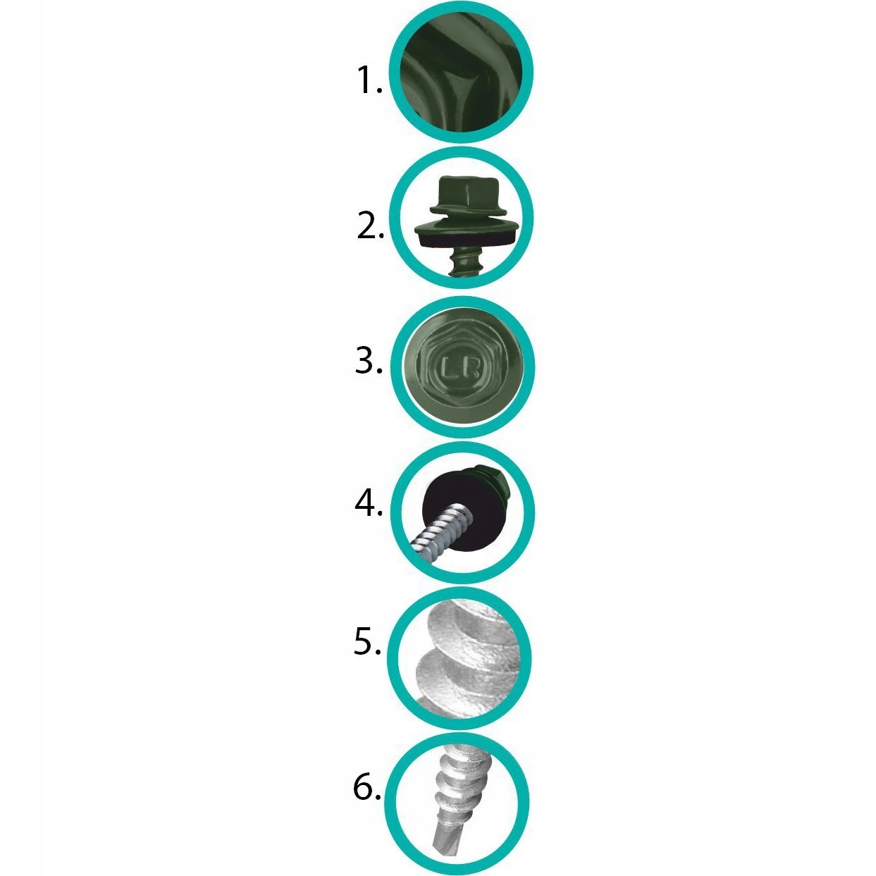 Powłoka lakierowana Powder.coat 50 µm dodatkowa ochrona antykorozyjna idealna dopasowanie do koloru pokrycia dachowego UV stabilizatory - niezmienność koloru nawet po kilkunastu latach. Podkładka EPDM wykonana z najlepszego materiału uszczelniającego EPDM nie traci elastyczności bardzo długi okres starzenia, po zamontowaniu sama wulkanizuje się na blachę, tworząc szczelne łącze. Podkładka zachowuje swoje właściwości pod wpływem temperatur w przedziale -50oC do +100oC.