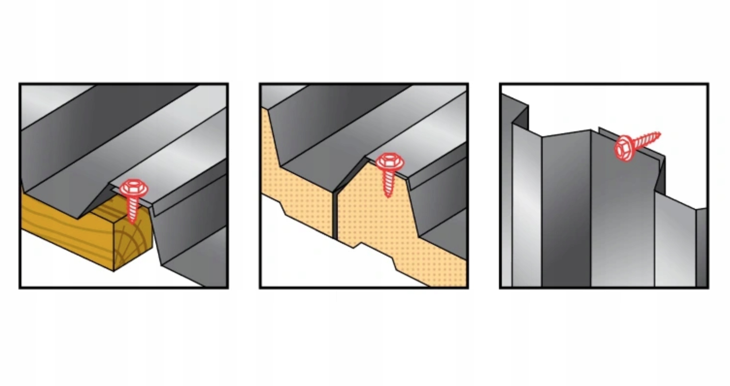 Łączenie ze sobą profilowanych blach stalowych konstrukcyjnych oraz okładzin płyt warstwowych na zakład - blachodachówka, łączenia dekarskie.