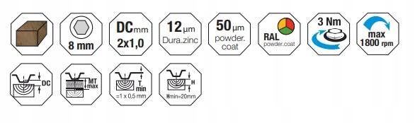 - Zalecana prędkość obrotowa wkręcania za pomocą wkrętarki: 1800 obr/min
