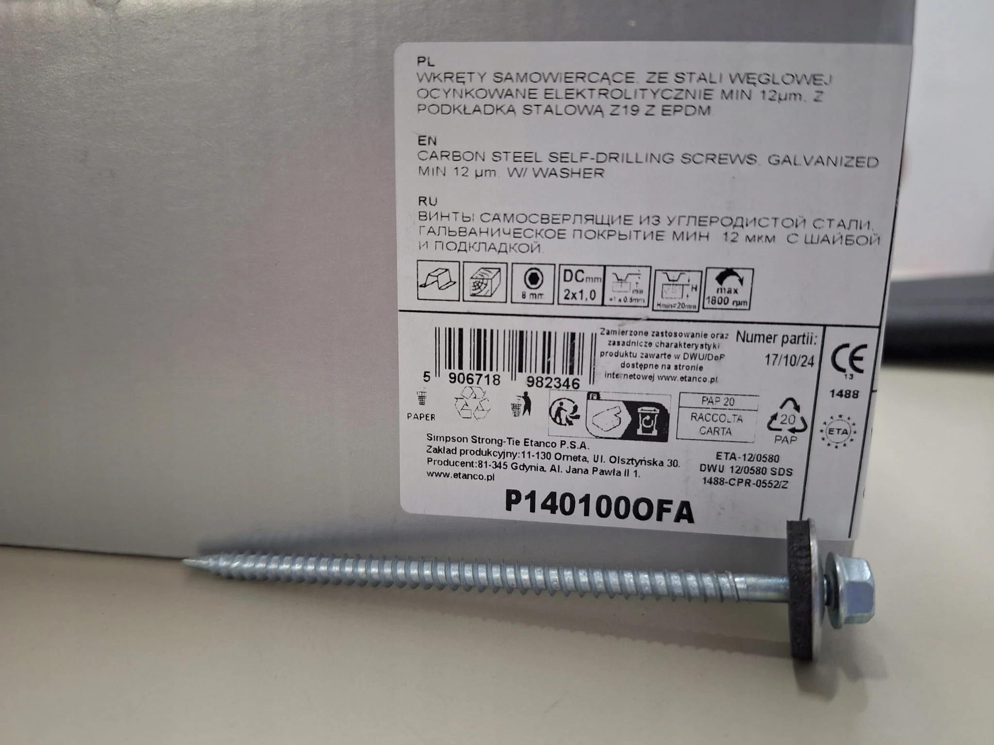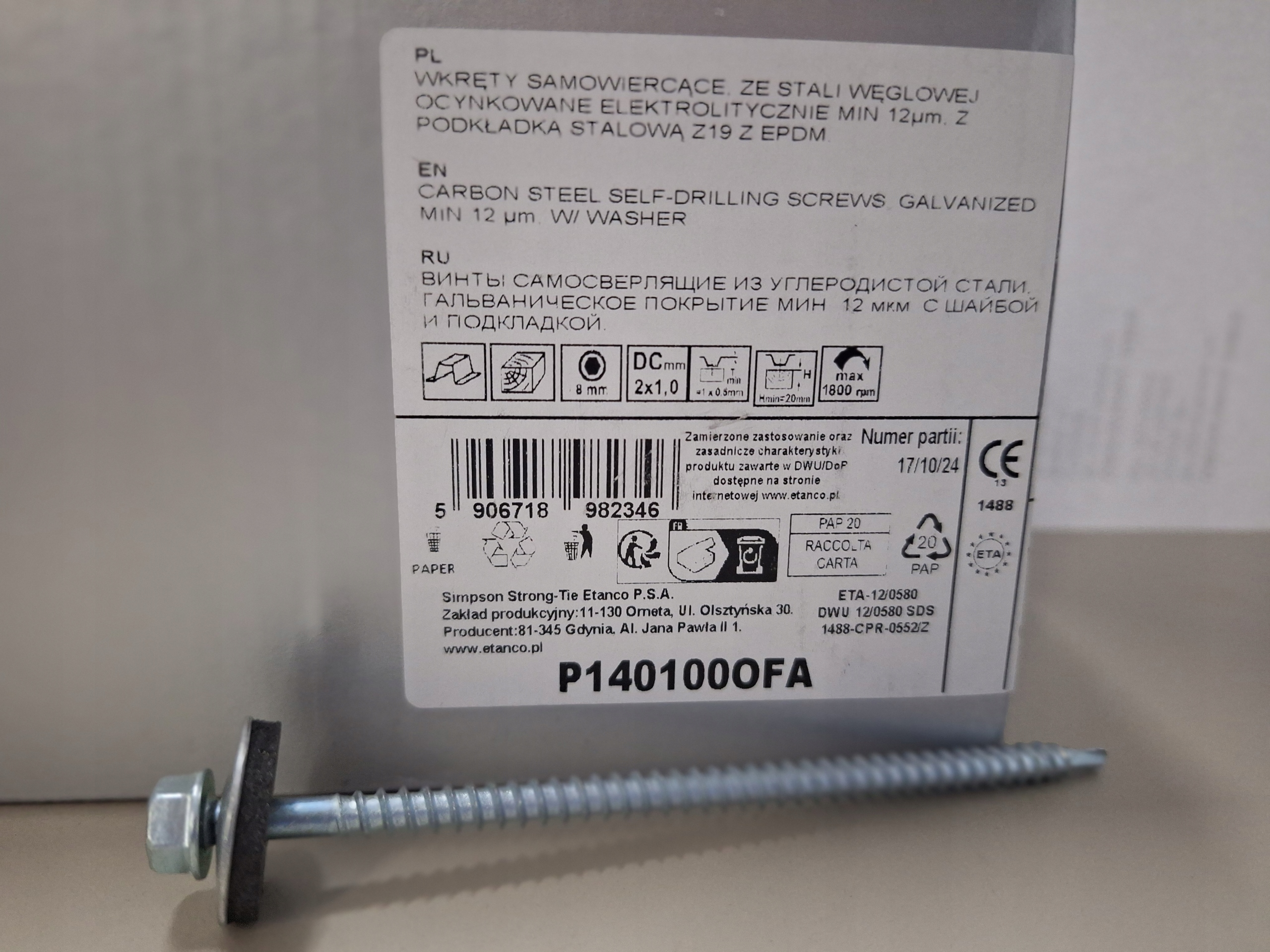 - Materiał wkrętu: Stal węglowa utwardzona cieplnie