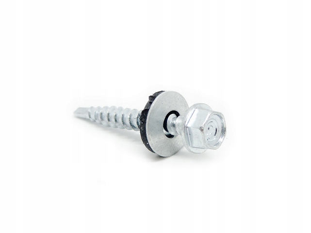 Wkręt samowiertny z podkładką uszczelniającą z EPDM zapobiegającą korozji, wibracją, oraz przedostawaniu się wody.