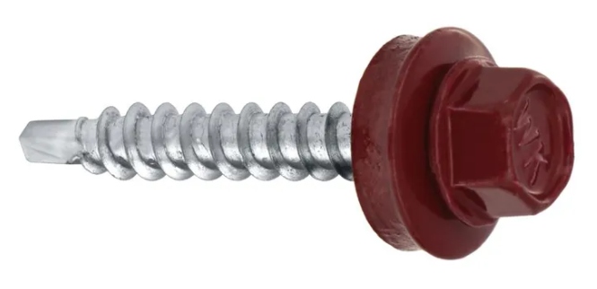 Wkręt samowiercący z podkładką EPDM, wykonany w powłoce cynkowej, do mocowania blach na zakład, wkręt typu zszywka.