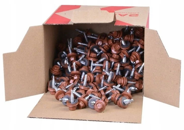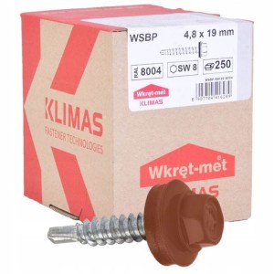 Wkręty farmerskie samowiercące z EPDM, 250szt. 4,8x19 mm RAL 8004 Wkręt Met