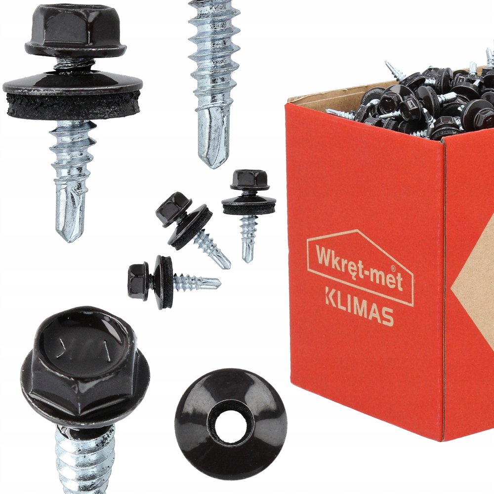 Wkręty farmerskie samowiercące z EPDM, 250szt. 4,8x19 mm RAL 8019 Wkręt Met