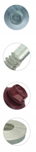 Wkręt samogwintujący z podkładką EPDM do mocowania płyt warstwowych do betonu i do drewna z gwintem niepełnym.