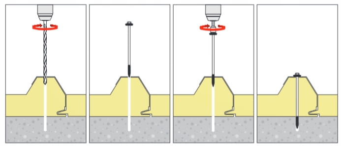 3.W betonie wiercimy otwór wiertłem o średnicy 5,0mm o głębokości min.40mm. Efektywna gł. zakotwienia w betonie 30mm.