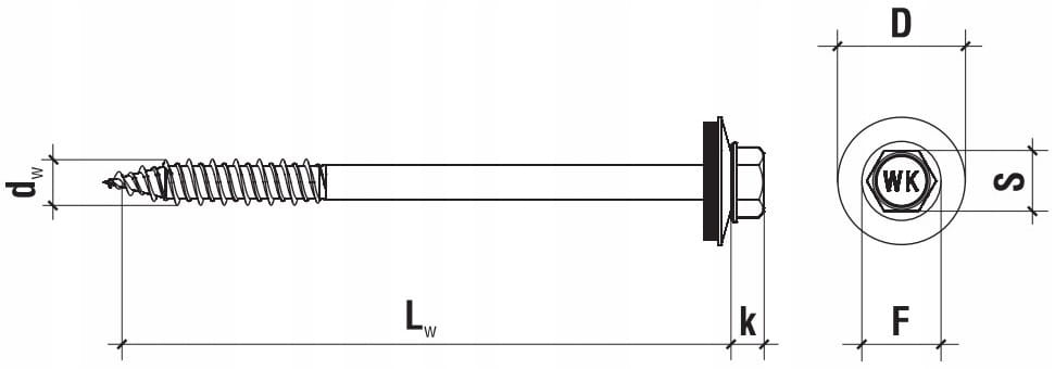 - Cechowany łeb wkręta - Cecha WK na łbie wkręta pozwala na identyfikacje naszej firmy jako producenta oraz łatwe rozpoznanie produktu.