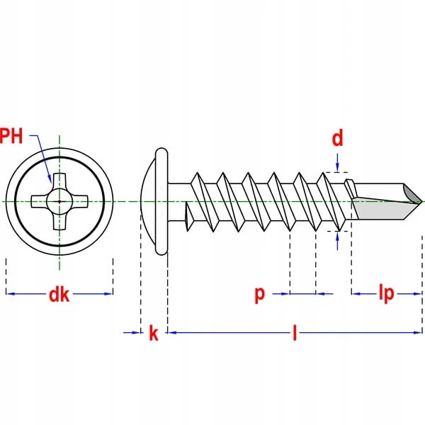 - Typ: Wkręt samowiercący – wierci, formuje gwint i mocuje w jednej operacji