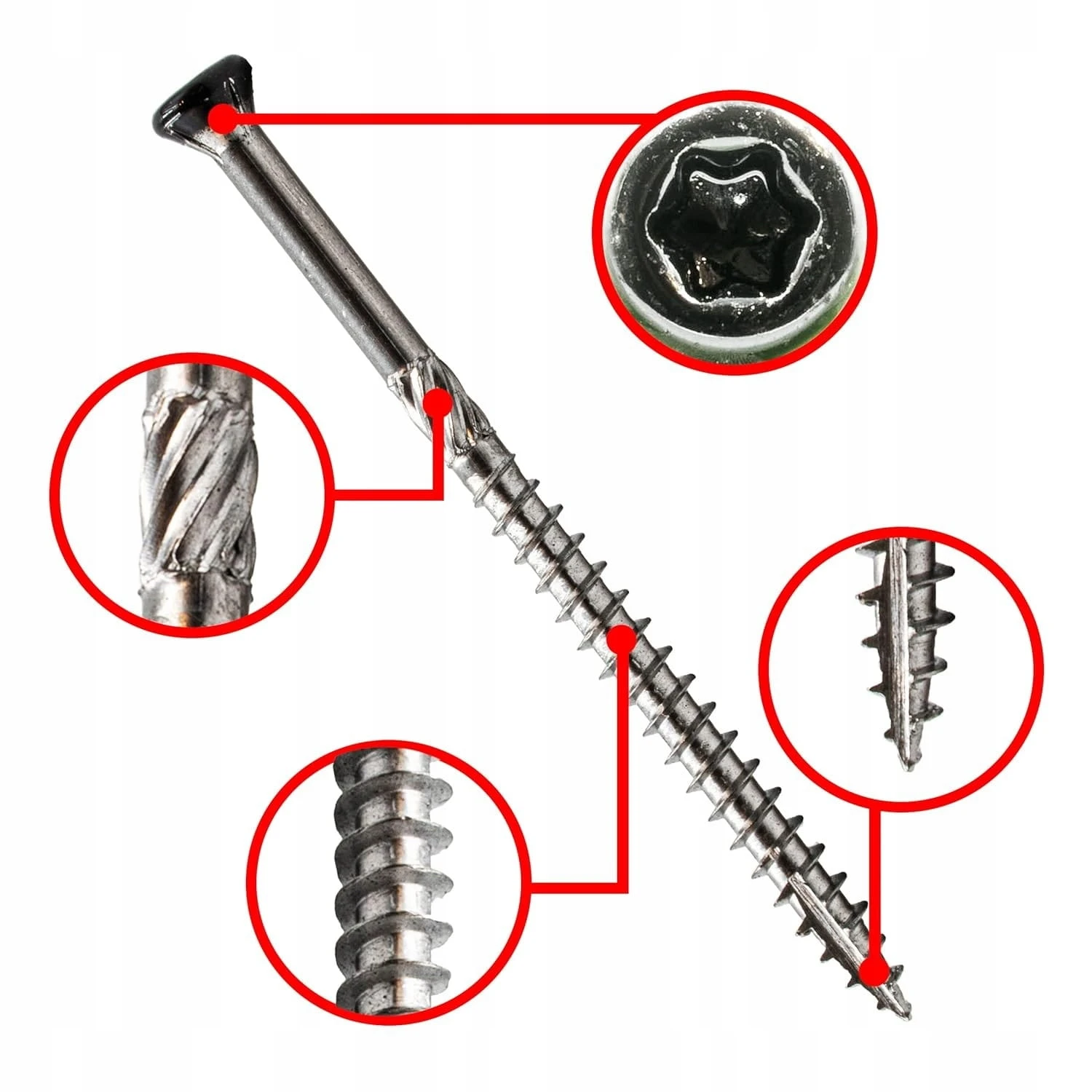 - frezujące żebra pod główką - ułatwiają osadzenie i sprawiają, że wkręt idealnie licuje z podłożem,