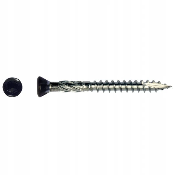 - frezujące żebra pod główką - ułatwiają osadzenie i sprawiają, że wkręt idealnie licuje z podłożem,