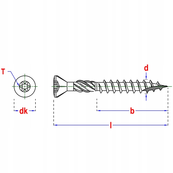 - frezujące żebra pod główką - ułatwiają osadzenie i sprawiają, że wkręt idealnie licuje z podłożem,